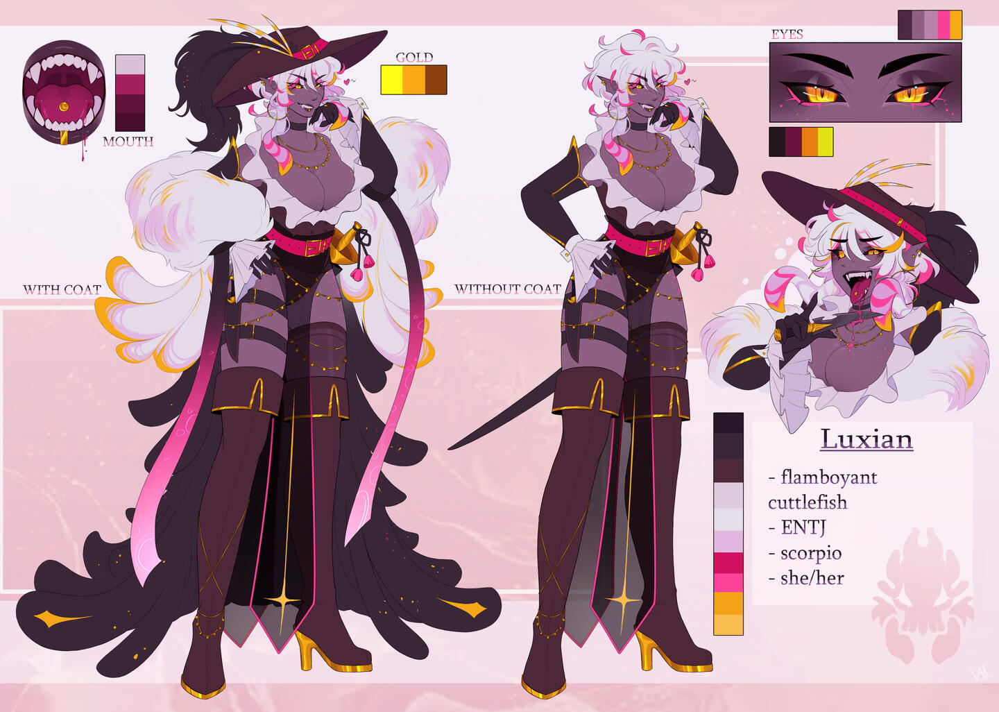 Ref Sheets will dominantly be flat colored with a default of a bust shot, fullbody, back of body or another set to show another outfit along with any addons you want to include. The more in your ref sheet the higher the cost.Ref Sheet: $180+*artwork example can be clicked for close ups
